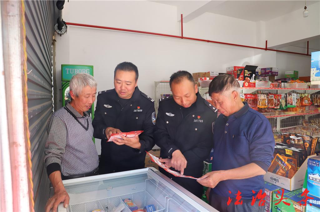 在张大爷家的商店门口,民警通过发放宣传单的方式,与张大爷一起学习党的十九届六中全会精神要点,并重点对伟大建党精神、党的百年奋斗的伟大成就和历史经验进行宣传讲解,把党的声音送到了边疆老百姓家中。张大爷听后激动地说道:“现在党的政策越来越好了,老百姓的日子也一天比一天好,党和国家没有忘记我们这些老年人,我们心里很高兴”。