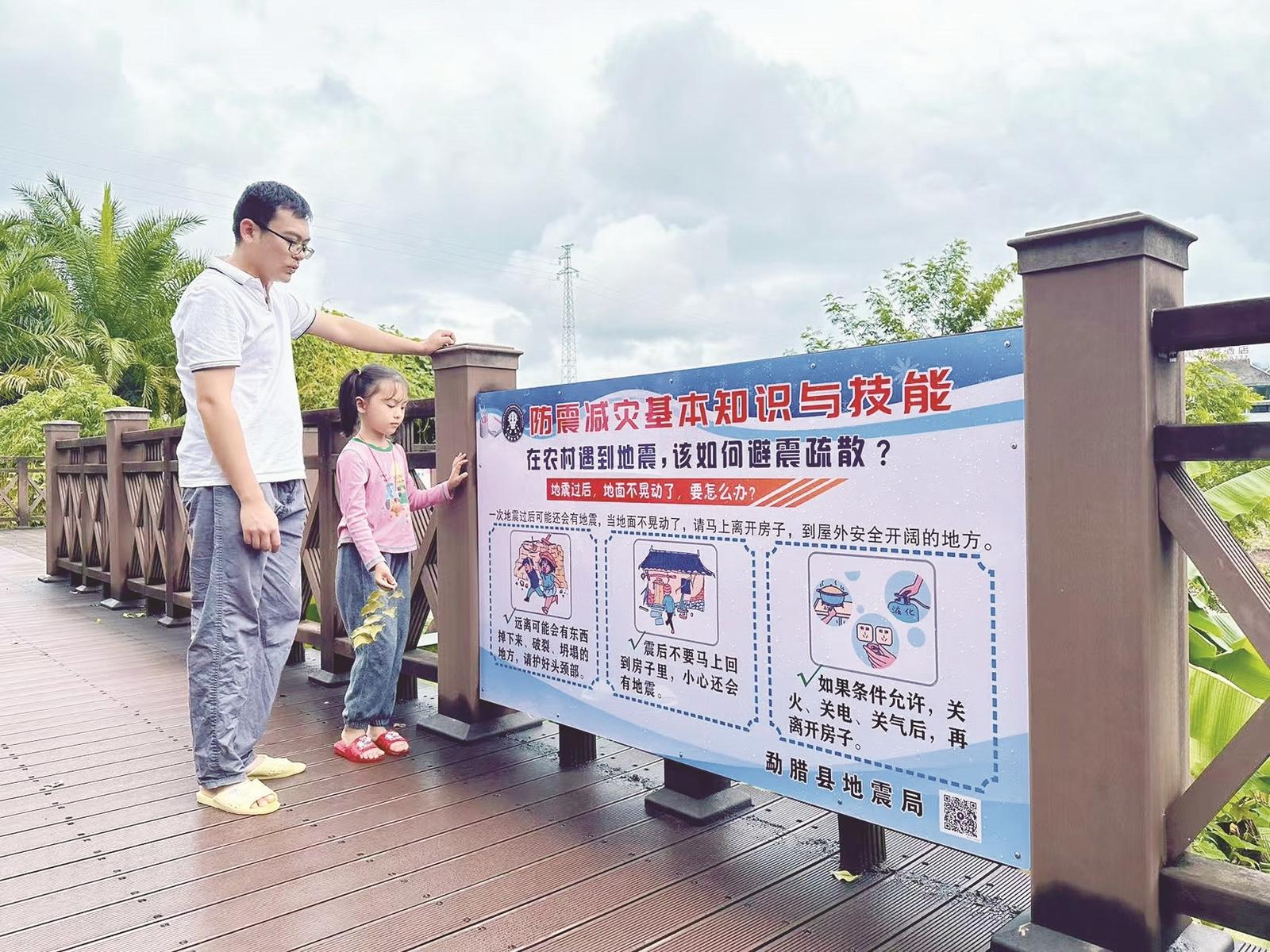 此次安装的防震减灾科普宣传展板位于县城人气旺盛的滨河路沿线栈道,内容紧扣群众需求,涵盖地震基本知识、科学避震要领、自救互救技能以及地震预警信息的获取途径与方法等。在设计上,展板注重图文并茂、通俗易懂,通过生动形象的插图与简洁明了的文字,以大众喜闻乐见的形式将专业的防灾知识转化为易于群众理解和掌握的信息。(周映杉)