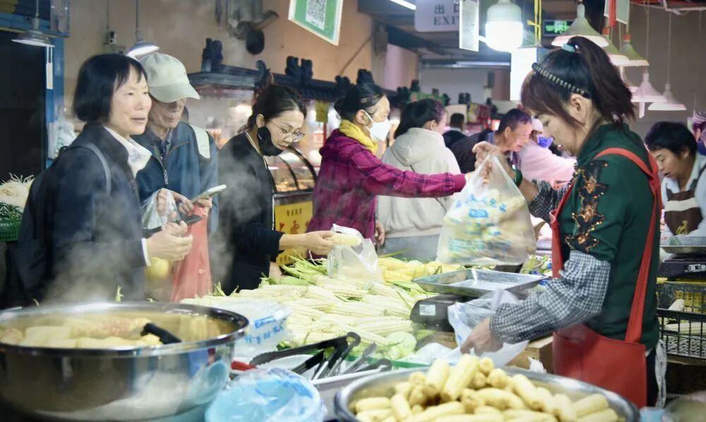 清晨,走进昆明五里多农博广场,手拉着折叠车的老年人穿梭在摊位间,挑选着新鲜的果蔬。累了,他们可以在新改造的适老化条凳上歇脚;渴了,可以到服务站续上一杯热水。
