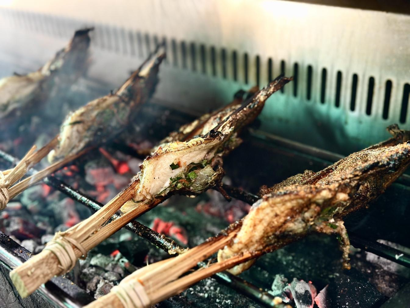 一缕鱼香引客来。正午的勐遮,“老奶烤鱼”炊烟袅袅。炭火噼啪作响,金黄的烤鱼油脂滴落,腾起裹挟着辛辣与鲜香的细烟,成为无法抗拒的味觉召唤。焦脆鱼皮下,嫩滑渗汁的鱼肉纹理浸润香料,食客们一口便沦陷于这独特的午间烟火。“老奶”之名,源自哈尼族奶奶二十余载的坚守,承载着时光沉淀的好味与乡愁,成为勐遮美食的金字招牌。