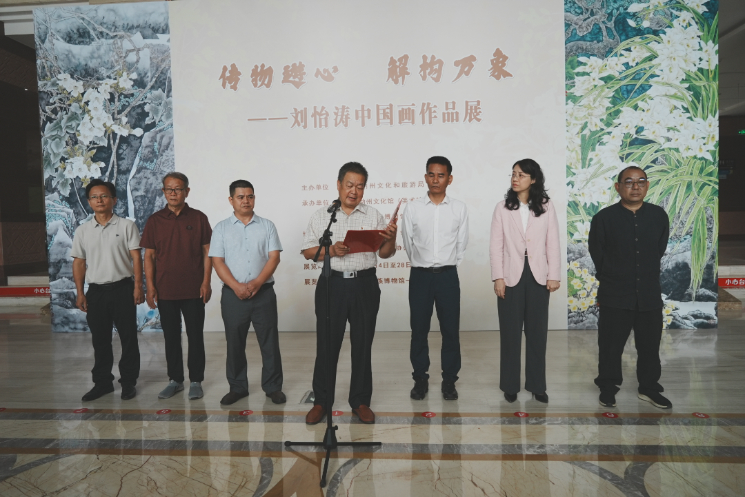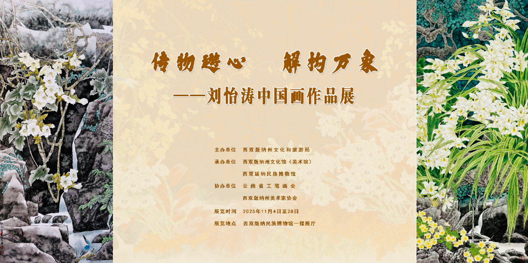 11月5日上午,"传物遊心·解构万象"刘怡涛中国画作品展开幕式暨捐赠仪式在西双版纳民族博物馆盛大启幕。本次活动由西双版纳州文化和旅游局主办,中国画坛百杰画家、云南省文史研究馆馆员刘怡涛携近年创作的66幅精品力作亮相,其中代表作《幽林晨霧石斛馨》正式捐赠给西双版纳州美术馆。