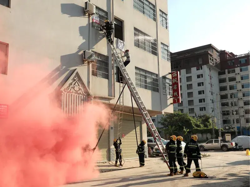 本次演练活动突出城中村、经营性自建房等基层消防安全实际,以“模拟经营性自建房突发火灾”为场景,演示被困人员利用逃生窗自救与消防救援人员快速破拆施救的全过程,通过“演示+讲解”开展电动自行车火灾实验、简易喷淋系统演示、违规动火作业模拟等实景教学,并组织群众进行灭火器实操训练。