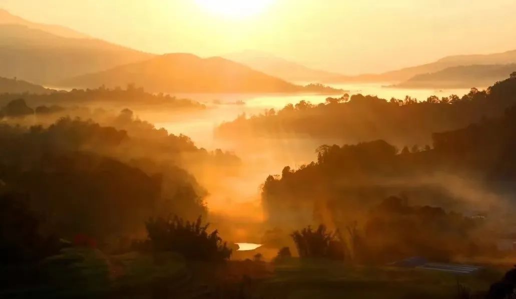 抽空到巴达古茶山,品巴达古茶,观巴达云海,看清晨初升的太阳喷薄而出,金色的阳光铺洒云海,如梦似幻地升腾着、翻滚着,然后成雾、成烟、成纱一起飘过茶山、飘进村寨……
