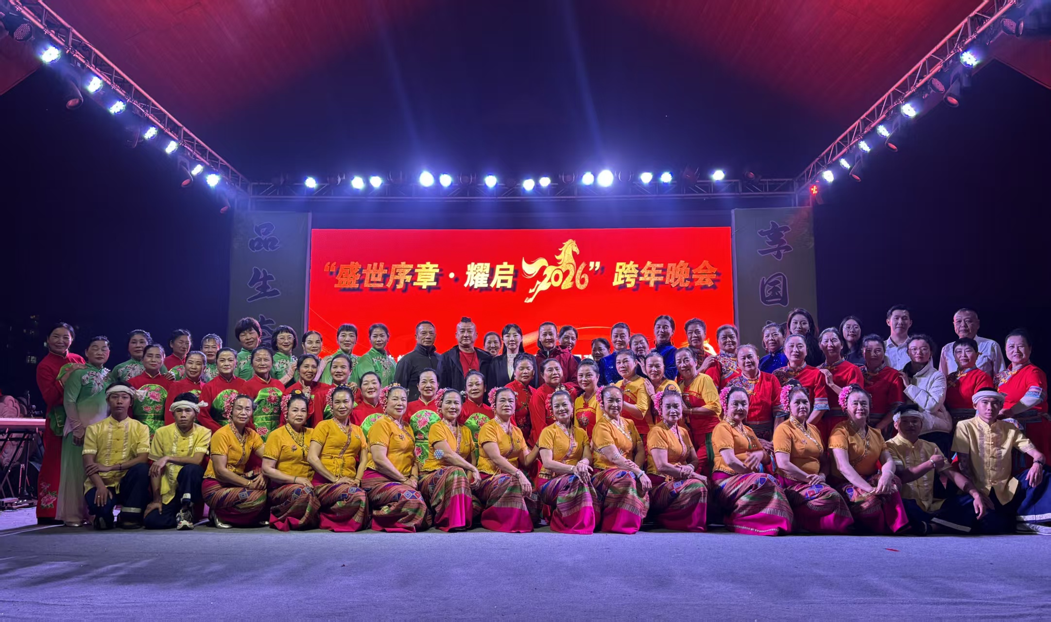 乐舞迎新展风采,银龄激情绽舞台。在勐腊县2026跨年晚会上,31名师生受邀亮相,用艺术盛宴为新年添彩。舞台上,师生们轮番登场,器乐合奏《花好月圆》《喜洋洋》旋律悠扬、喜气洋洋,奏响新年的美好祈愿;舞蹈《万疆》舞姿翩跹、气势昂扬,诉说着对祖国山河的热爱。灵动的演绎、饱满的热情,不仅营造出喜庆祥和的节日氛围,更展现了老年学员们老有所学、老有所乐的昂扬风貌与扎实的艺术功底,赢得现场观众阵阵掌声与喝彩。