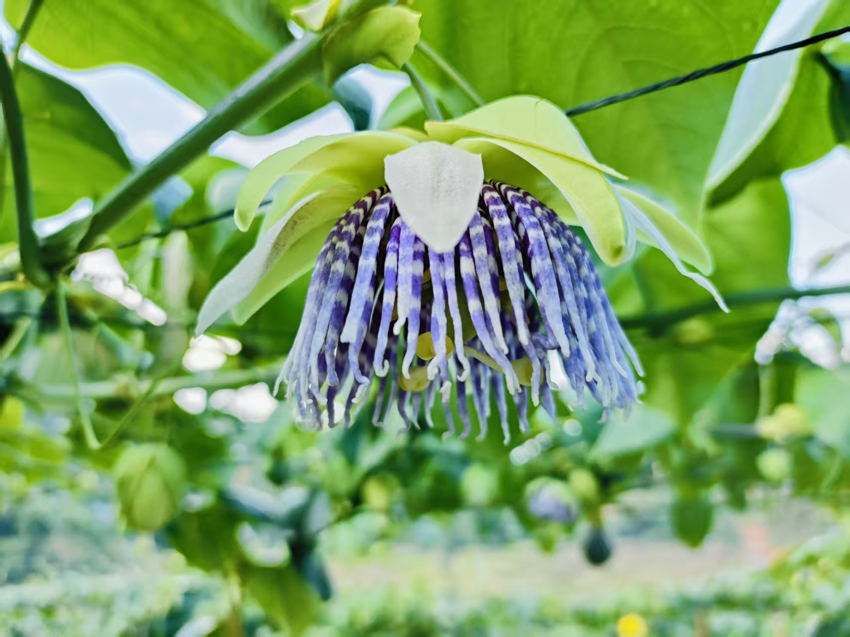 在西双版纳傣族自治州勐海县勐遮镇的山野中,昔日闲置的贫瘠山地,如今早已被翠绿藤蔓密密缠绕、爬满篱架。紫蓝白相间的热情果花,恰似碎钻缀满枝头,在风中热烈绽放,悄悄孕育出水果界的“甜宠”——黄金热情果。它开着热烈的花,结着甜润的果,更酿出了村民日子红火的致富甜!