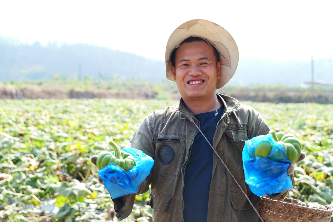 勐满镇城子村党支部书记、合作社负责人岩温丙介绍道:“我们合作社统一提供种苗、统一技术指导、统一收购标准,确保瓜的品质。镇农业综合服务中心技术人员深入田间,手把手指导农户进行病虫害绿色防控、水肥一体化管理等,有效提升了姜柄瓜的产量和商品率。”