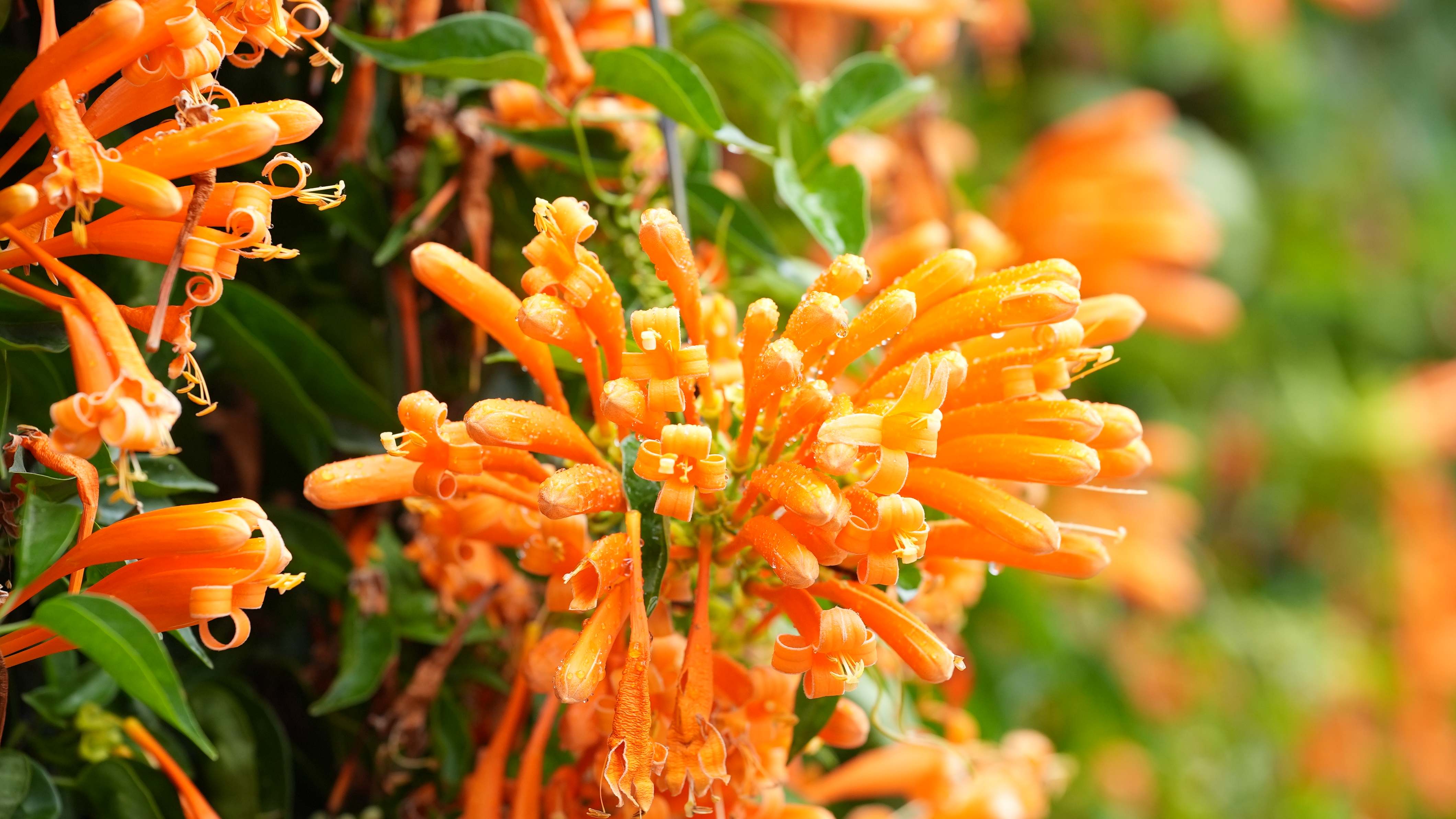 春风执笔,最先点染的,是满枝满墙的橙红欢喜。炮仗花顺着院墙垂落,一串串、一簇簇,像未歇的喜庆烟火,挨挨挤挤地燃亮了街巷;枝干上的火烧花更显肆意,像春风点燃的一簇簇火把,把暖意烧得滚烫,直直撞进行人眼底。