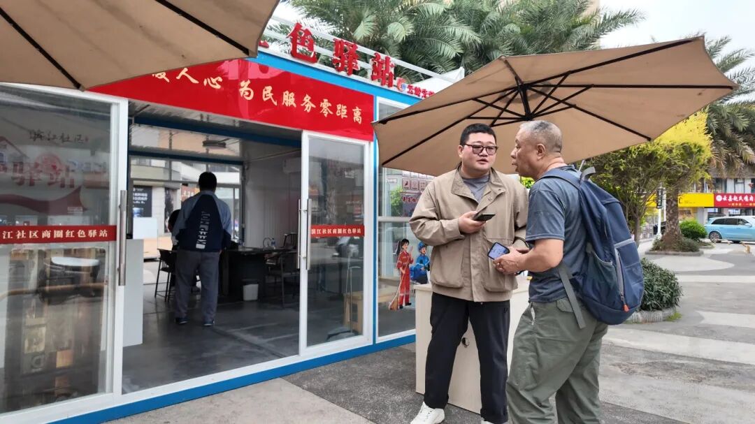 党员志愿服务队则提供政策咨询、社保医保缴费指引、线上政务代办等多元化服务。尽管驿站面积不大,但在泼水广场这一商圈核心地段,它已成为名副其实的“便民神器”。自开设以来不到四个月,已累计服务群众800余人次。