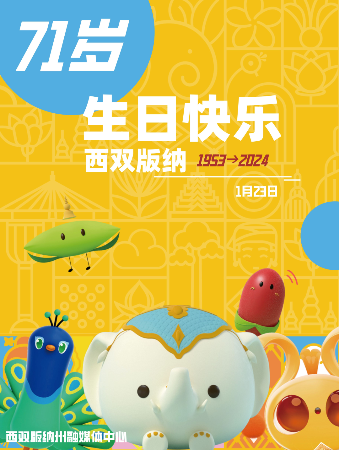 原标题:1953→2024 西双版纳 生日快乐!