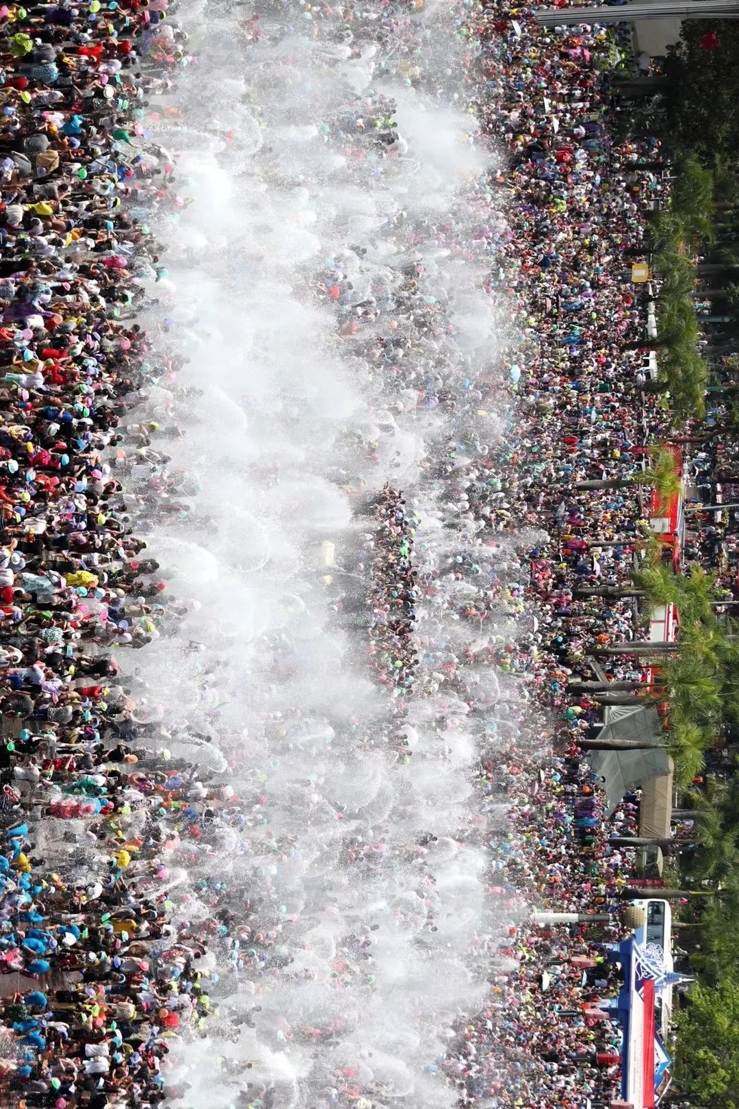 图为身着节日盛装的西双版纳州各族干部群众和国内外宾客,相聚在澜沧江畔,隆重举行傣历1385年新年节庆祝大会。