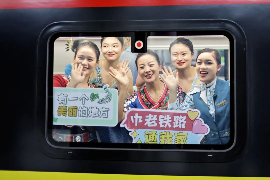 中老铁路开通首日,乘务员举牌庆祝 陈飞 摄