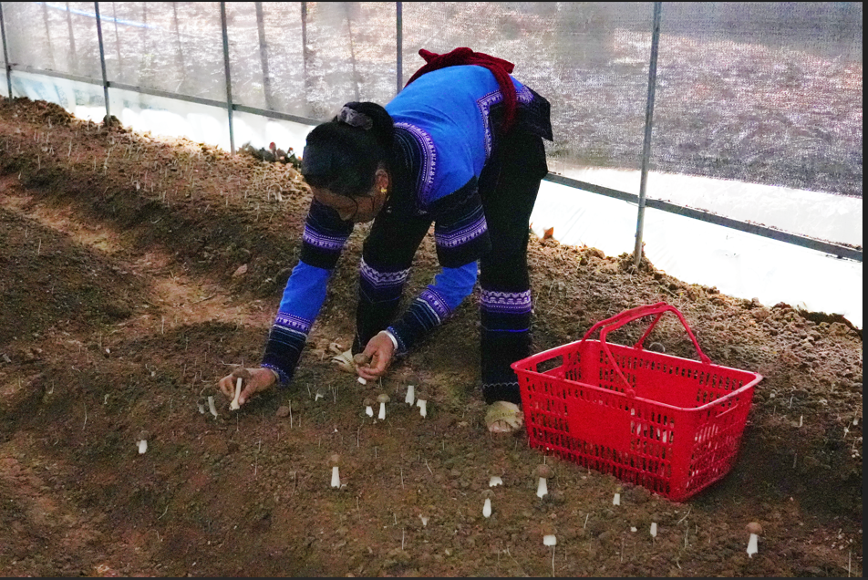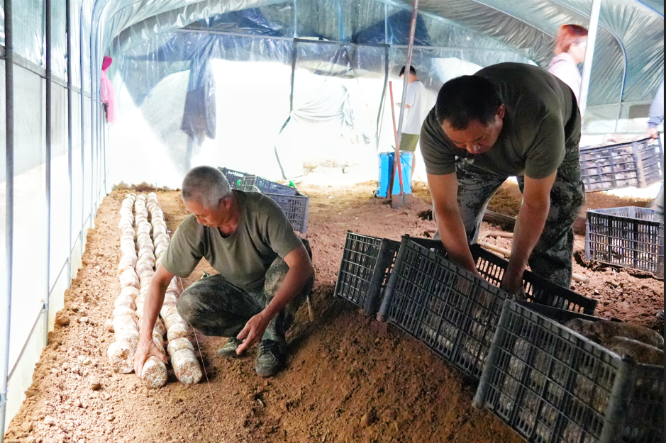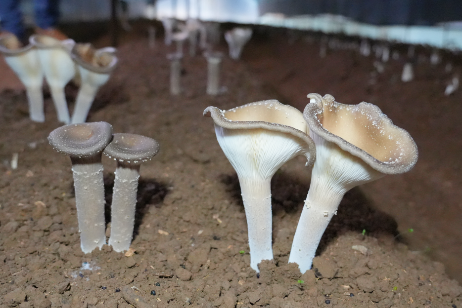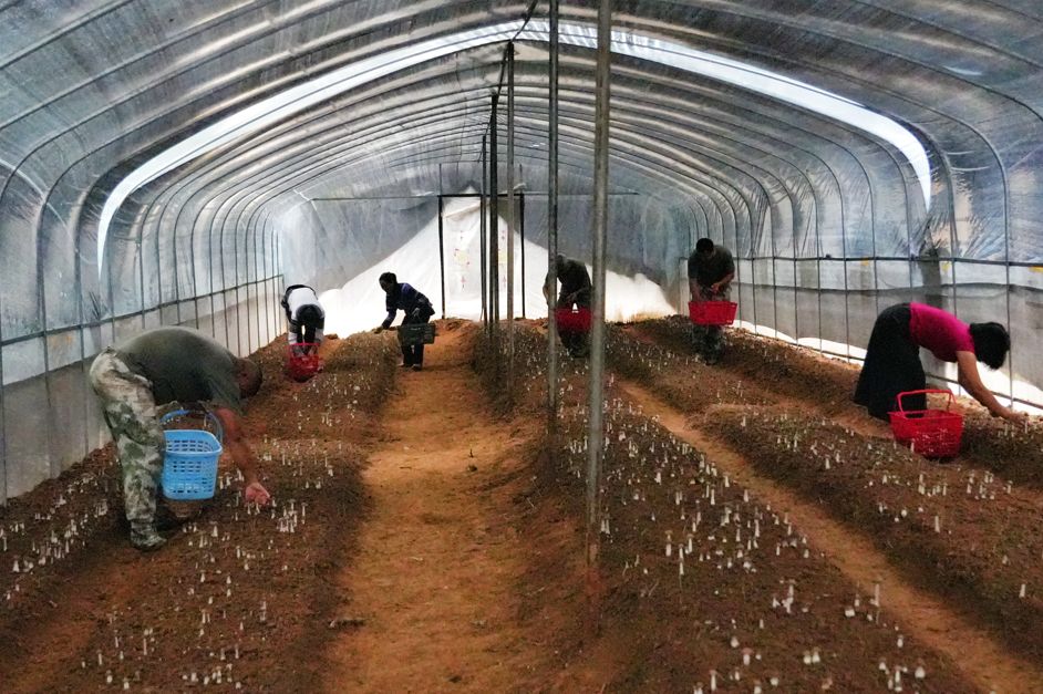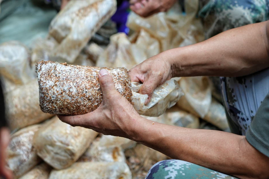 “一个大棚可以产一吨左右的鸡枞,一亩按两个棚算可以产两吨,两吨的话大约就是一万多块钱。基地一共种了竹荪、露水鸡枞、灵芝、猪肚菌,后期的牛肝菌五个品种,项目用地面积是210亩,大约年收益的话在70到80万。”叶剑说。