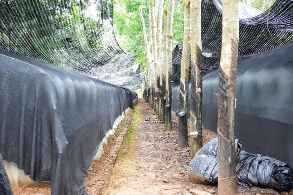丰富的橡胶地资源为食用菌的种植提供了天然优势,勐腊县农垦集团有限责任公司联合勐腊县林创公司探索食用菌种植项目,项目按照“集团+资源+平台”思路,充分利用橡胶林下的空间及其阴凉、湿润的环境开展食用菌种植,通过科学的种植和管理,人工培育出红托竹荪、露水鸡枞、竹灵芝等菌种,开展野外牛肝菌、猪肚菌、黑木耳等种植研发,为当地群众拓宽就业增收渠道,促进橡胶林下资源的综合利用。