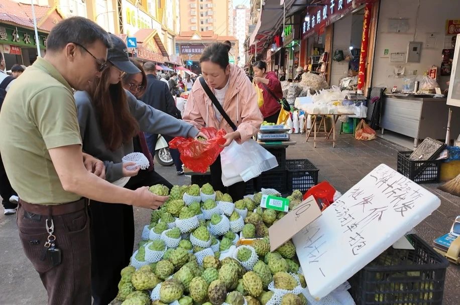 “市场的东西很新鲜,人也很热情。像这种大芒果在我们老家是没有的,所以每次朋友来,都会带她们到这里采购。现在店家还可以直接帮我们邮寄回去,特别方便。”旅居景洪的陕西游客陈阿姨说,现在买完东西,留下邮寄地址,店家就能直接帮忙打包发货。高效便捷的物流,让远在千里之外的家人也能品尝到来自西双版纳的“味道”。