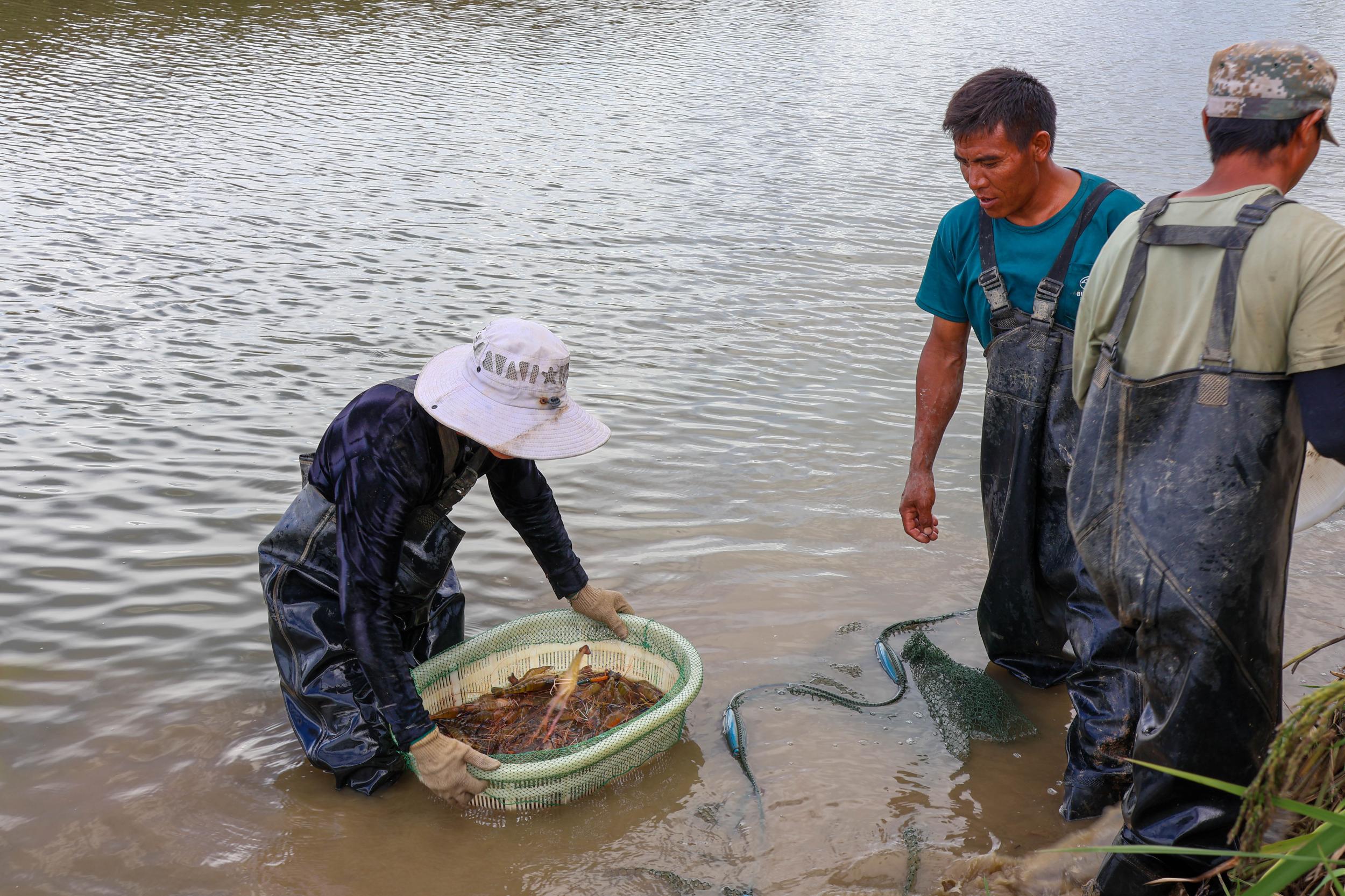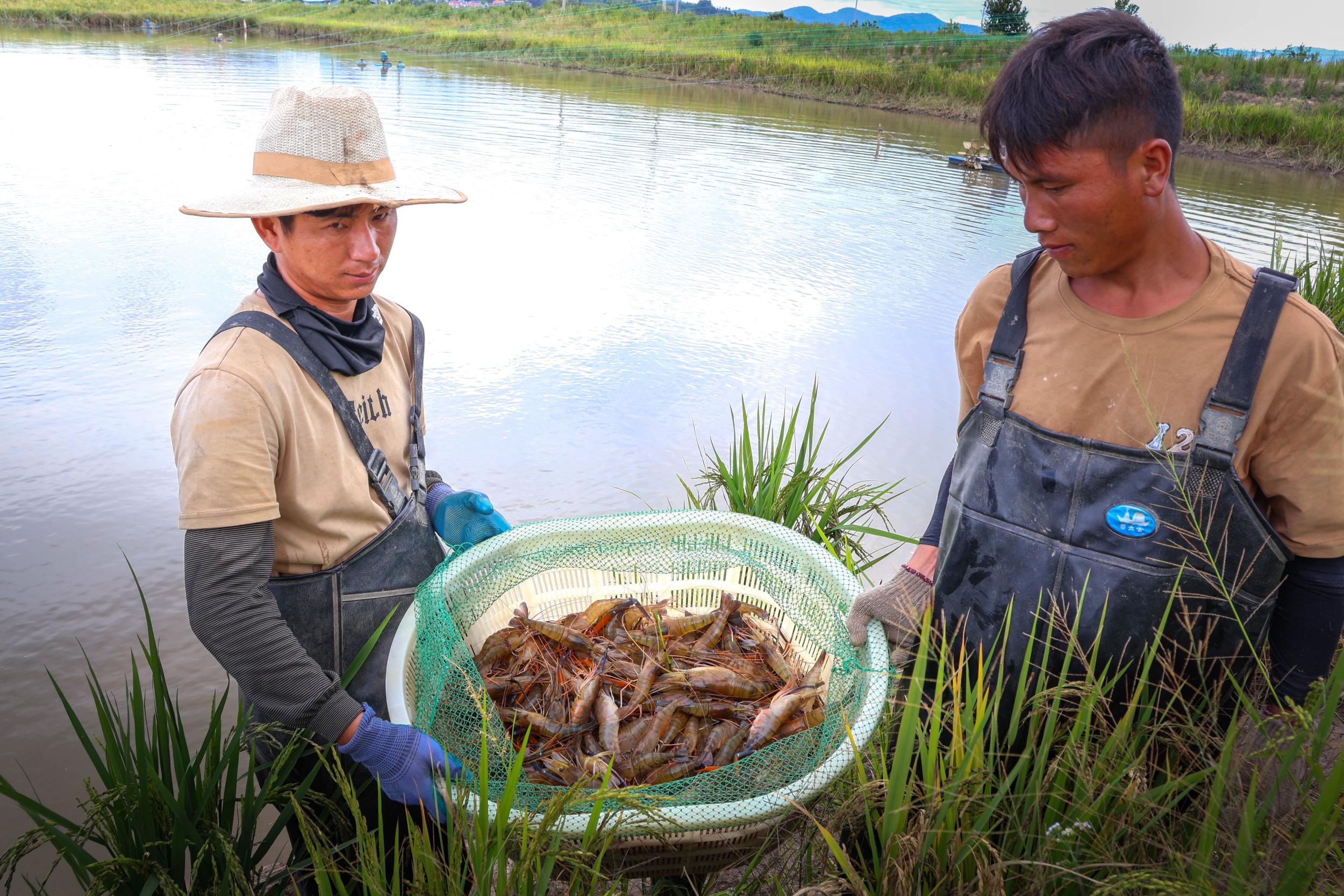 此外,该公司通过“公司+合作社+农户”的双绑机制,带动周边8个村委会1213户农户实施稻田综合种养10080亩,户均增收近1.2万元,未来计划带动更多农户走稻虾养殖生态种养模式,把罗氏沼虾培育成为勐遮稻虾产业的一块重要拼图。