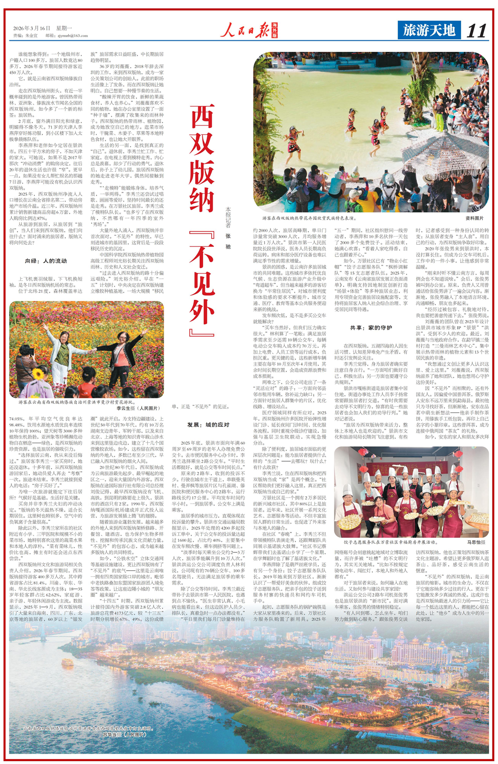 “有人问到哪、怎么坐车,咱们努力做到贴心服务。”跟张俊男交谈时,记者感受到一种身份认同的转变:从旅居者变身“主人翁”,用自己的行动,为西双版纳争取好印象。