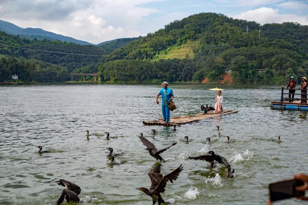 曼飞龙水库小流域治理后,引入企业经营发展,进行旅游表演
